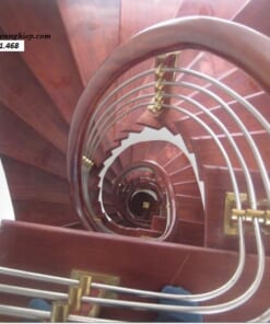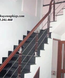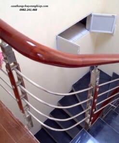 Cầu thang Inox hiện đại, tay vịn gỗ